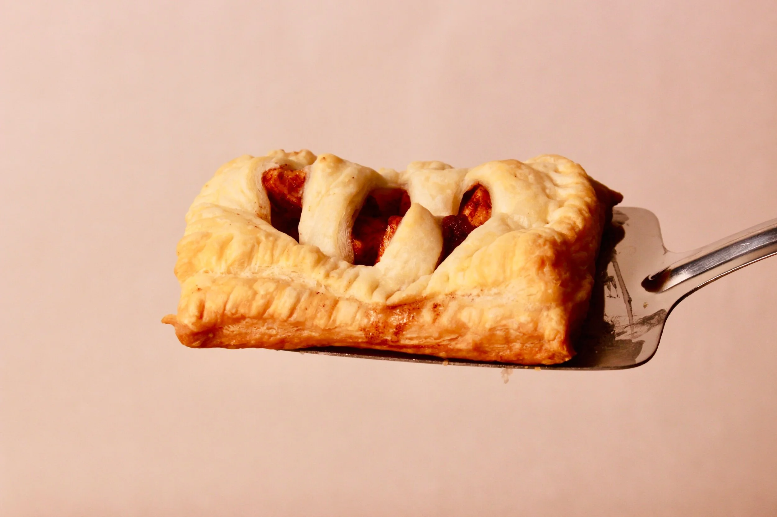 sugar crusted and buttered puff pastry with diced apples, brown sugar, and cinnamon