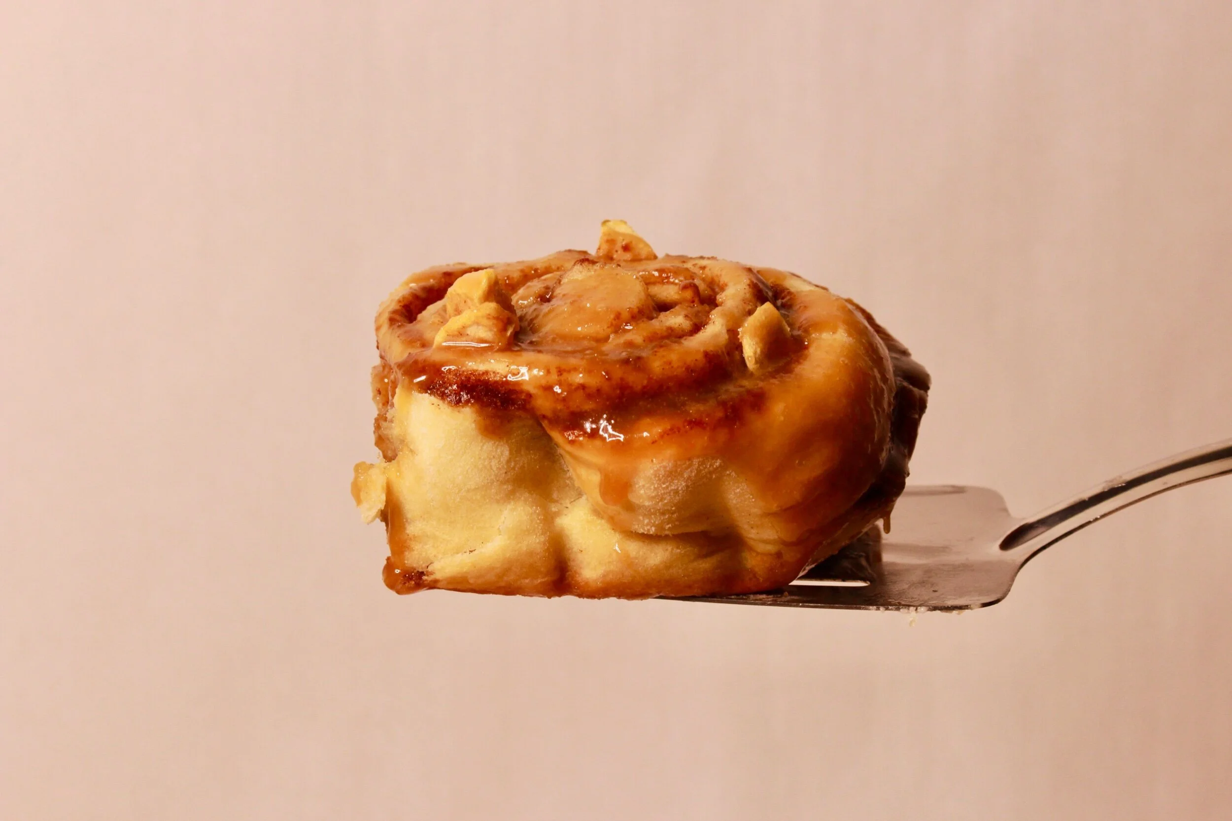 sweet roll made from scratch with fresh apple filling with caramel drizzle