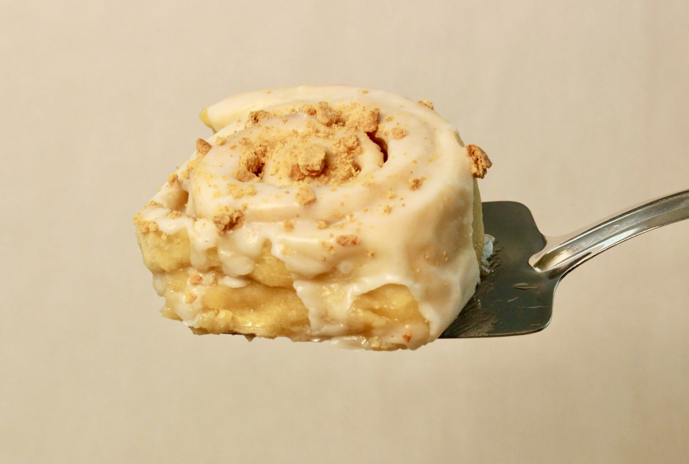 sweet roll with fresh lime and cream cheese icing topped with graham crackers